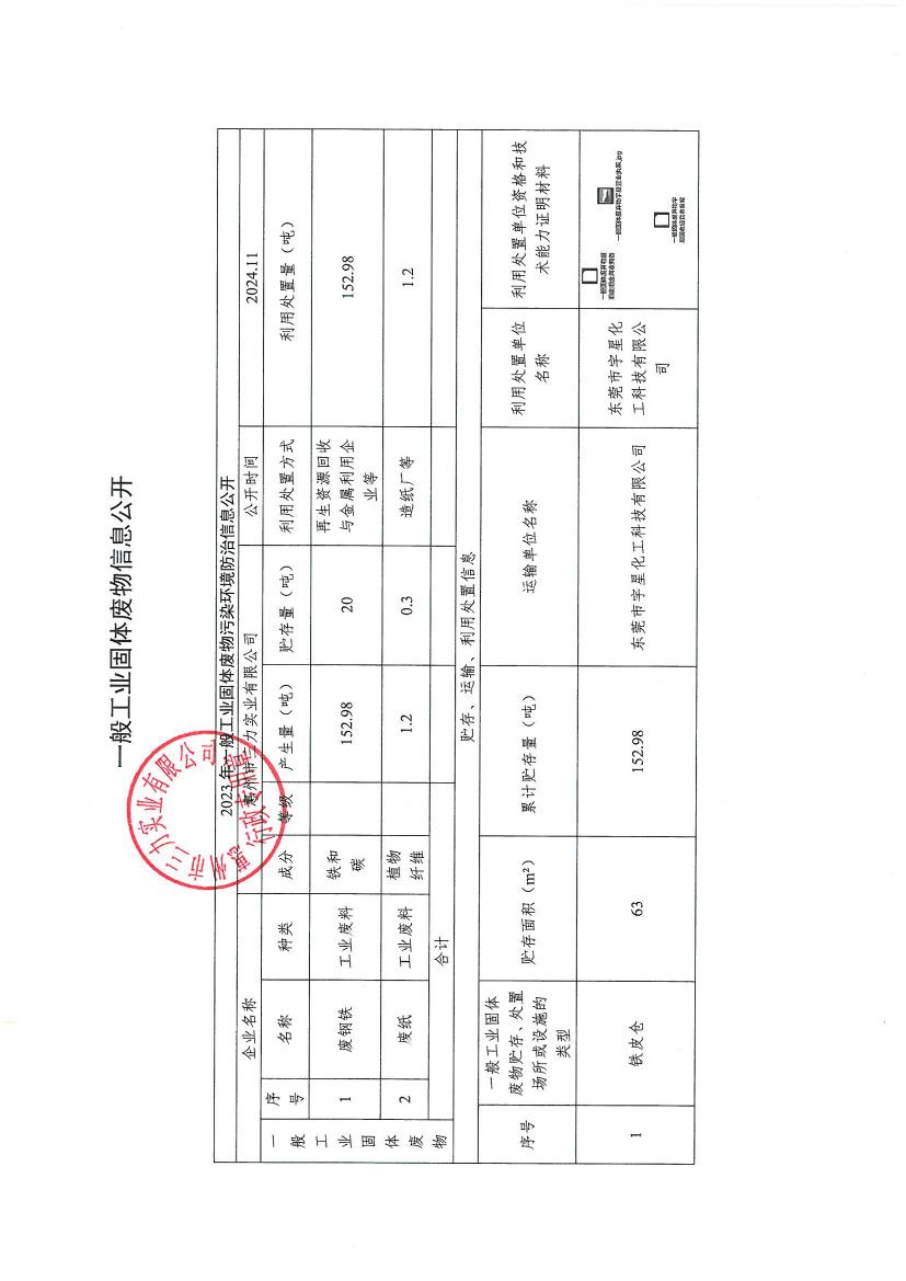公司新聞 |一般工業固體廢物信息公開2024-11-21